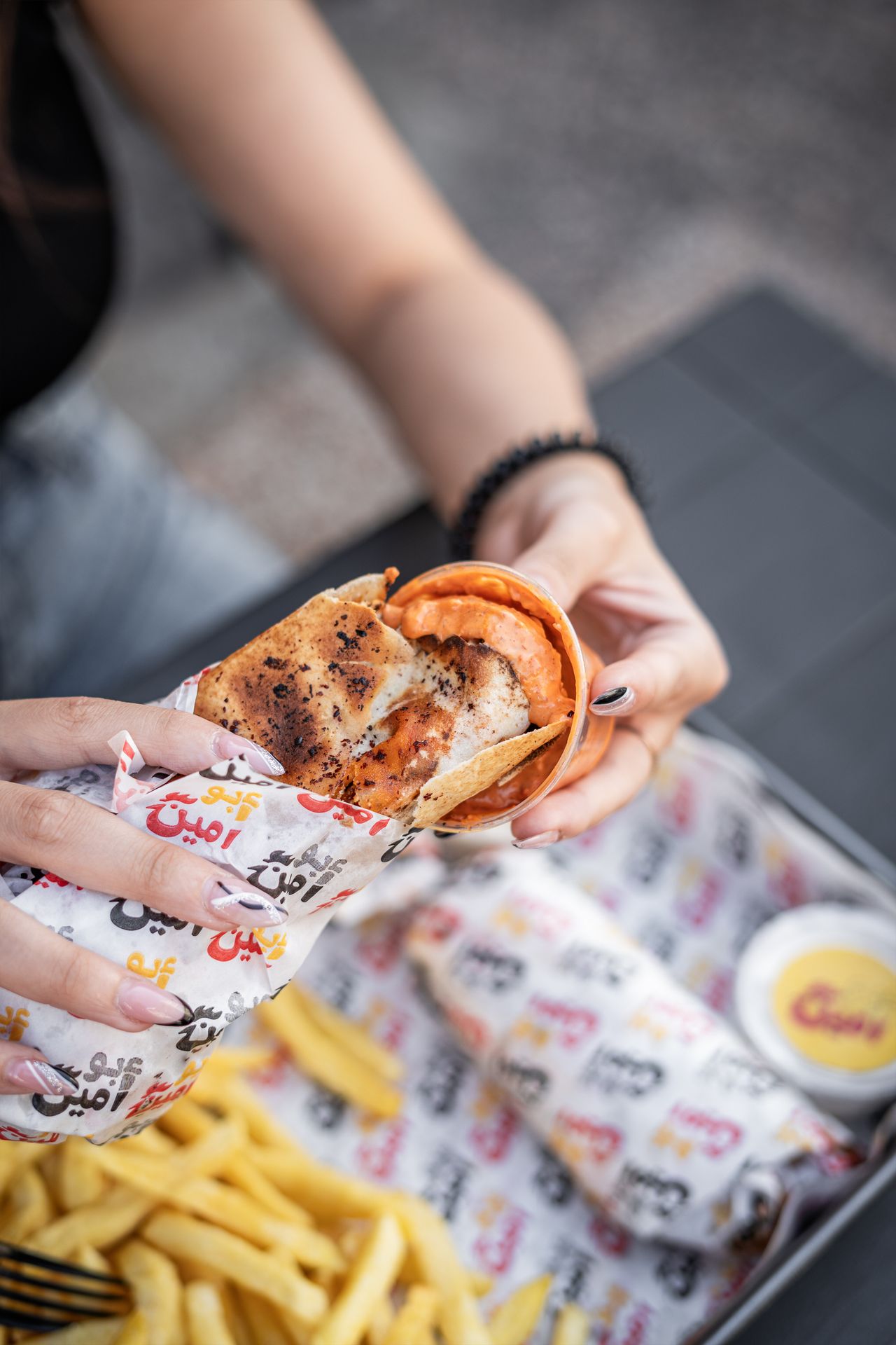 Farrouj Abou Amin stands out with its signature Abou Amin sauce, generous portions, and unbeatable prices, serving authentic Lebanese chicken sandwiches that burst with flavor.